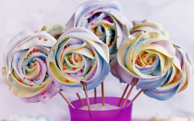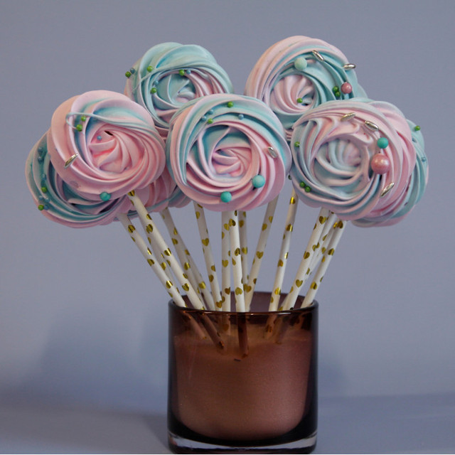 Яскраве та смачне безе на паличці – відмінний варіант для Кенді бару. Запакований десерт у пакетик і прикрашений стрічкою.
